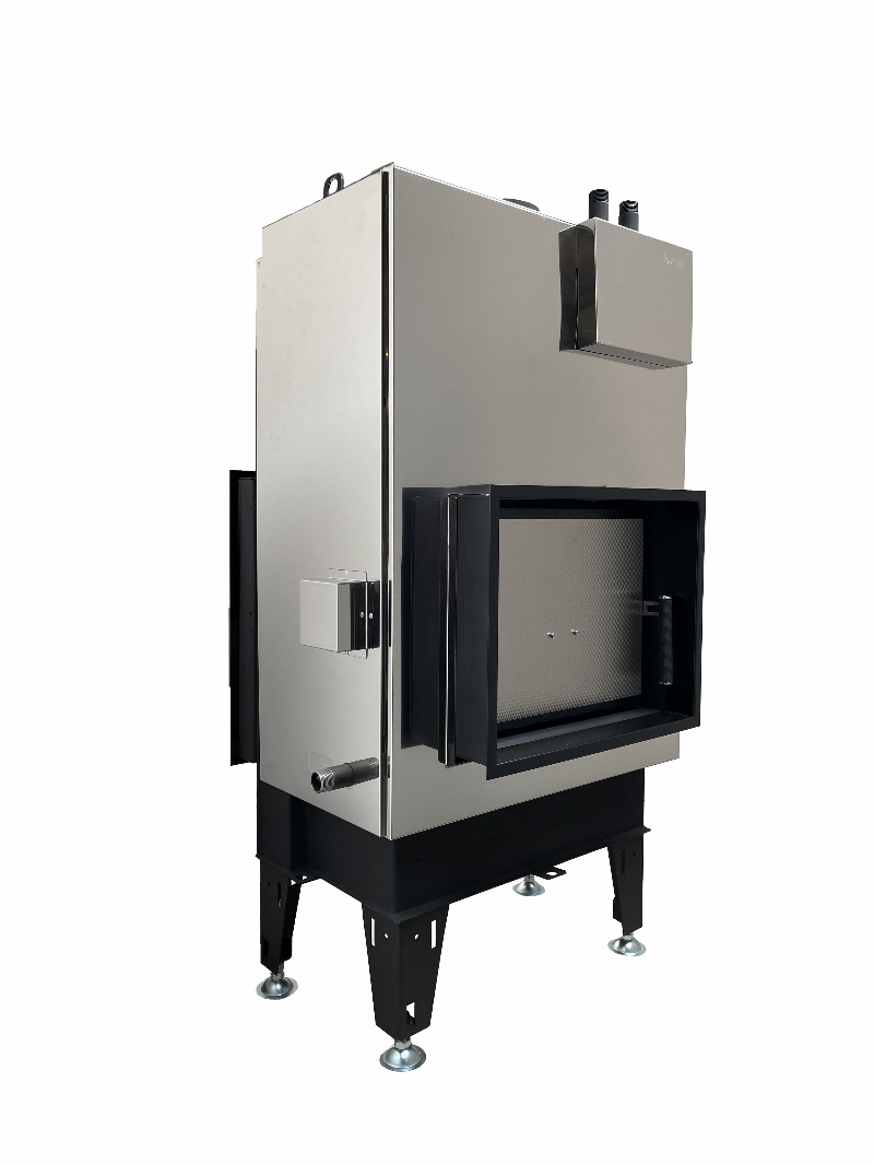 Wszystkie wkłady kominkowe z płaszczem wodnym zostały wykonane z wysokiej jakości żaroodpornej blachy stalowej. Wszystkie nasze wkłady kominkowe z płaszczem wodnym posiadają palenisko wyłożone materiałem akumulacyjnym Cacon lub szamotem, w celu przekazywania jak najwięcej mocy do wymiennika wodnego oraz oszczędności paliwa. Ogólne wrażenie kominka z płonącym ogniem uzupełnia szyba żaroodporna produkowana przez najlepszych światowych producentów, której czystość zapewnia opracowany system rozprowadzania powietrza wtórnego przez ramę.