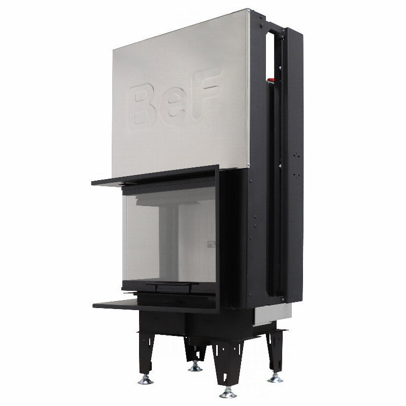 Dzięki palenisku wyłożonemu materiałem akumulacyjnym Carcon, wyprodukowanemu specjalnie dla naszej firmy, uzyskano wysoką czystość i sprawność spalania oraz bardzo ładny widok na ogień. Korpus wkładu kominkowego jest pokryty izolacją, wkład posiada w standardzie podwójne przeszklenie. To również powoduje maksymalną wydajność ciepła przekazywanego do wymiennika. Wysuwny system nowej generacji, który zapewnia maksymalną szczelność oraz komfort obsługi (drzwiczki w tym systemie przesuwają się równolegle do ramy, a w ostatniej fazie dociskają się równomiernie po całym obwodzie ramy, dzięki czemu zapewniają maksymalną szczelność). Uszczelnienie paleniska zapobiega przenikaniu spalin do pomieszczenia.