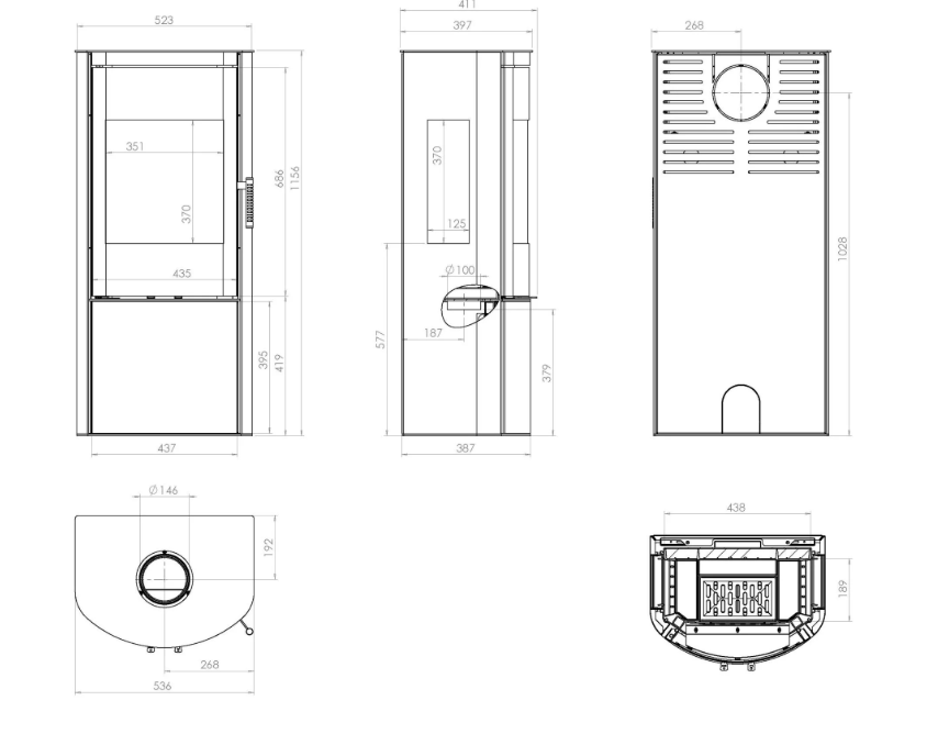 Kominek REGO 3S to połączenie estetyki i funkcjonalności. Jego zaokrąglony front oraz dodatkowe przeszklenia boczne sprawiają, że urządzenie wygląda lekko i elegancko. Brak tradycyjnej nogi na rzecz pełnej zabudowy dolnej nadaje mu stabilny, monolityczny charakter, jednocześnie ukrywając elementy regulacji i popielnik za estetycznymi drzwiczkami.