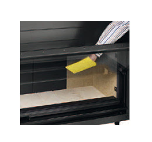Nowoczesne wzornictwo wkładów oraz drzwiczki „bez ramek” nie przesłaniają paleniska. Doskonały widok ognia podczas palenia w kominku jest zapewniony także dzięki połączeniu efektu pirolizy oraz odpowiedniego obiegu powietrza wewnątrz paleniska. Dlatego ręczne czyszczenie szyby jest potrzebne jedynie sporadycznie.