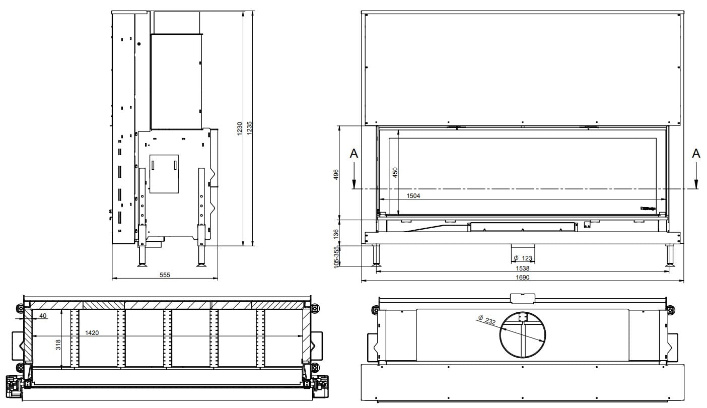 Wkład kominkowy KFD LINEA H 1570 z gilotyną
