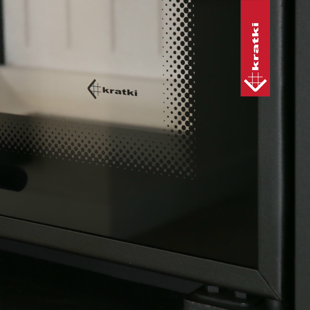 Dekoracyjna szyba typu glass wytrzymująca temperaturę do 660°C, która nadaje kominkowi nowoczesny i elegancki wygląd, optycznie powiększa front wkładu.