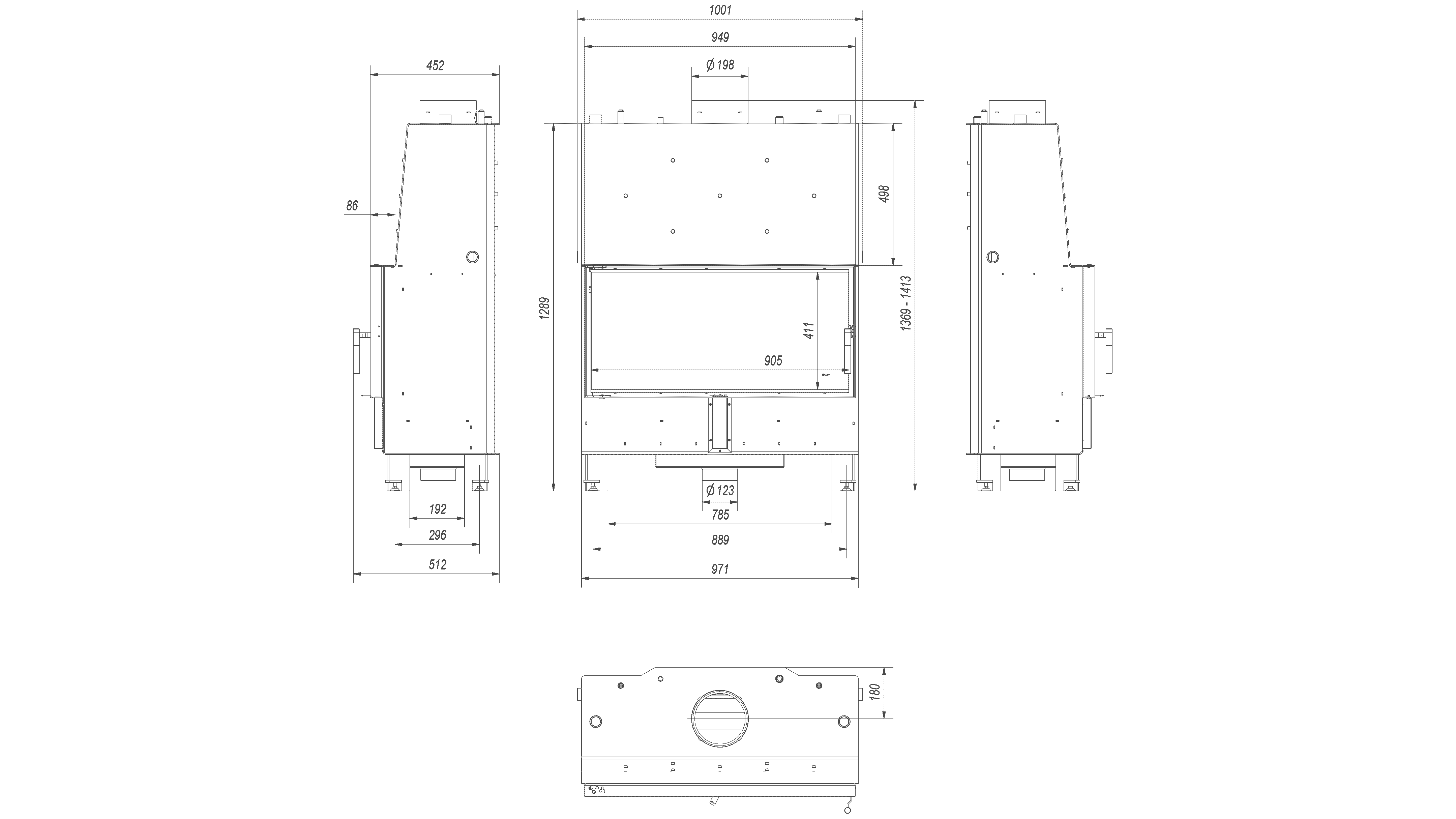Wyjmowany ruszt i popielnik ułatwiają utrzymanie wkładu w czystości.