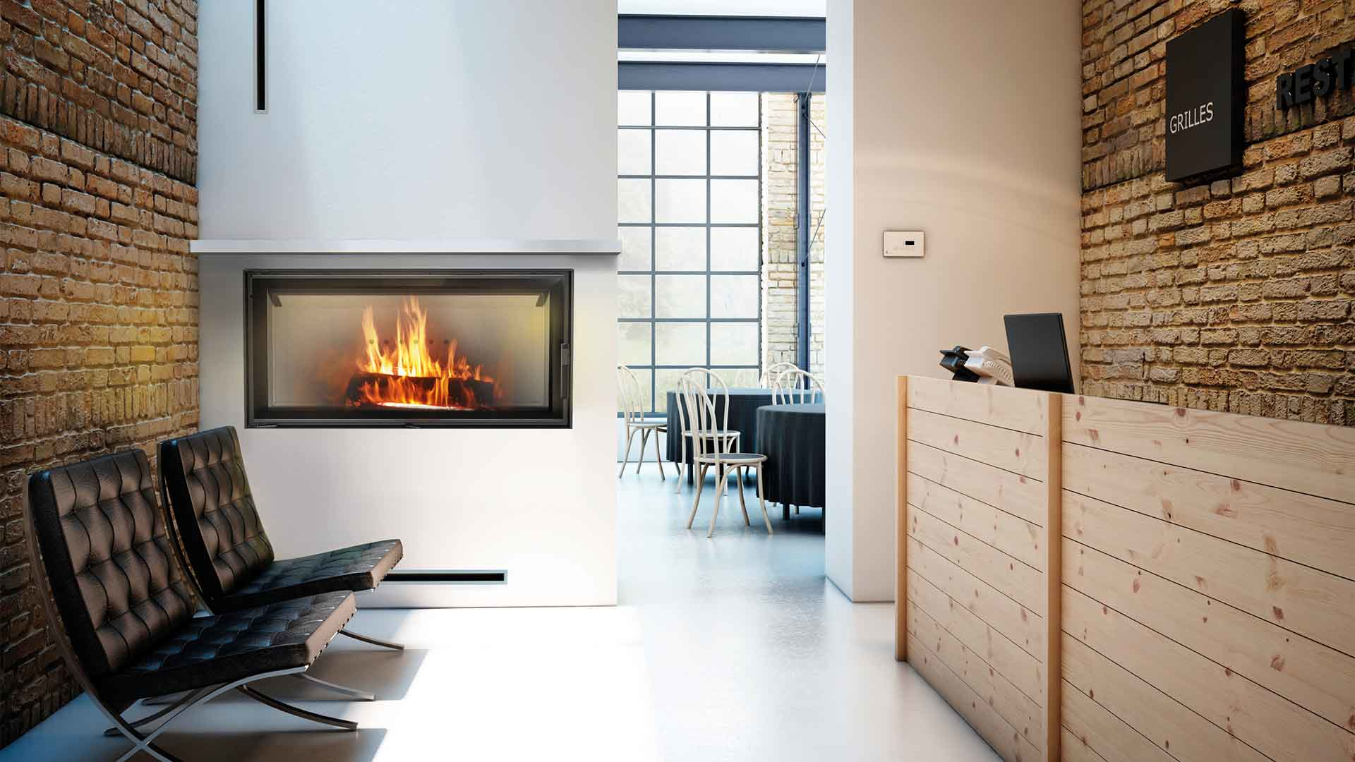Specjalna perforowana konstrukcja klamki chroni przed nadmiernym nagrzewaniem, co wpływa na wysoki komfort użytkowania kominka.