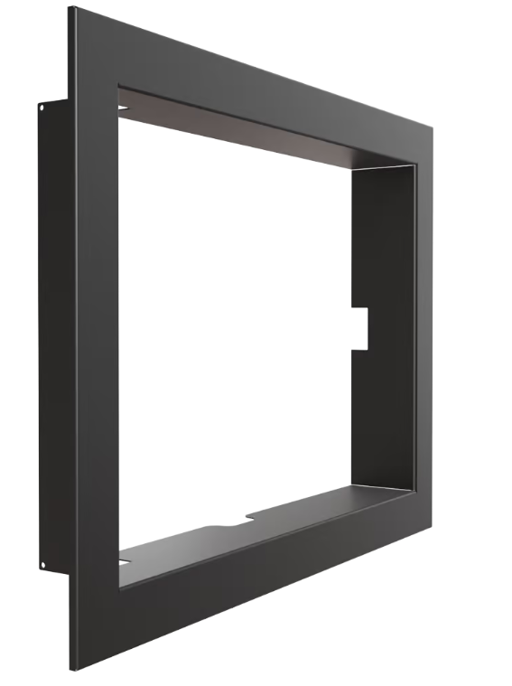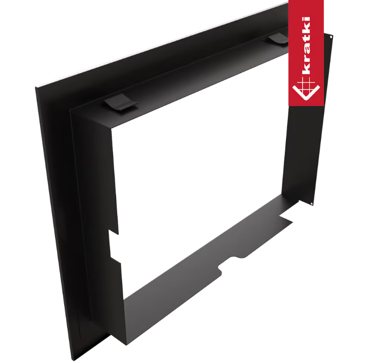 Nowoczesna stalowa ramka ozdobna do wkładu kominkowego powietrznego FLOKI. Jej główną zaletą jest łatwy i szybki montaż. Instalację ramki można wykonać samemu.