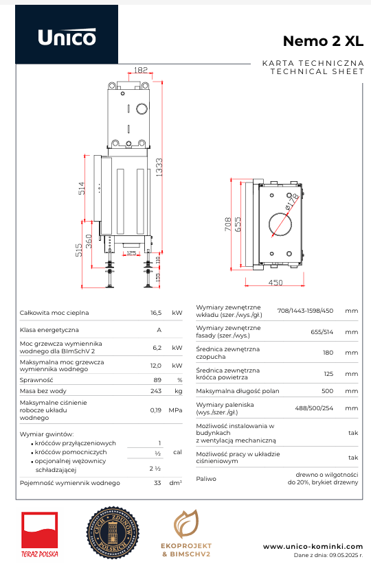 Wodny wkład kominkowy UNICO Nemo 2 XL Raster o mocy 16kW