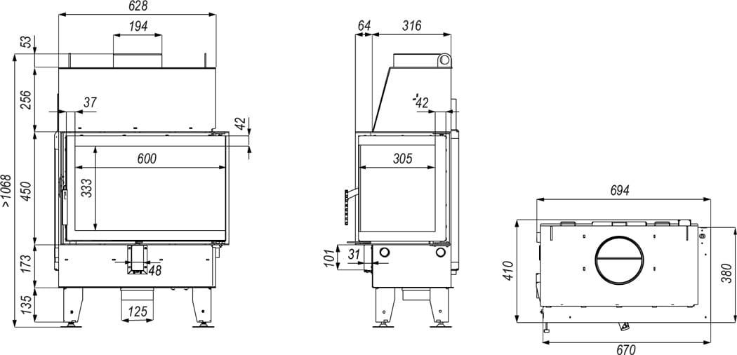 - zmaksymalizowany odzysk ciepła metodą konwekcji z wkładu kominkowego
