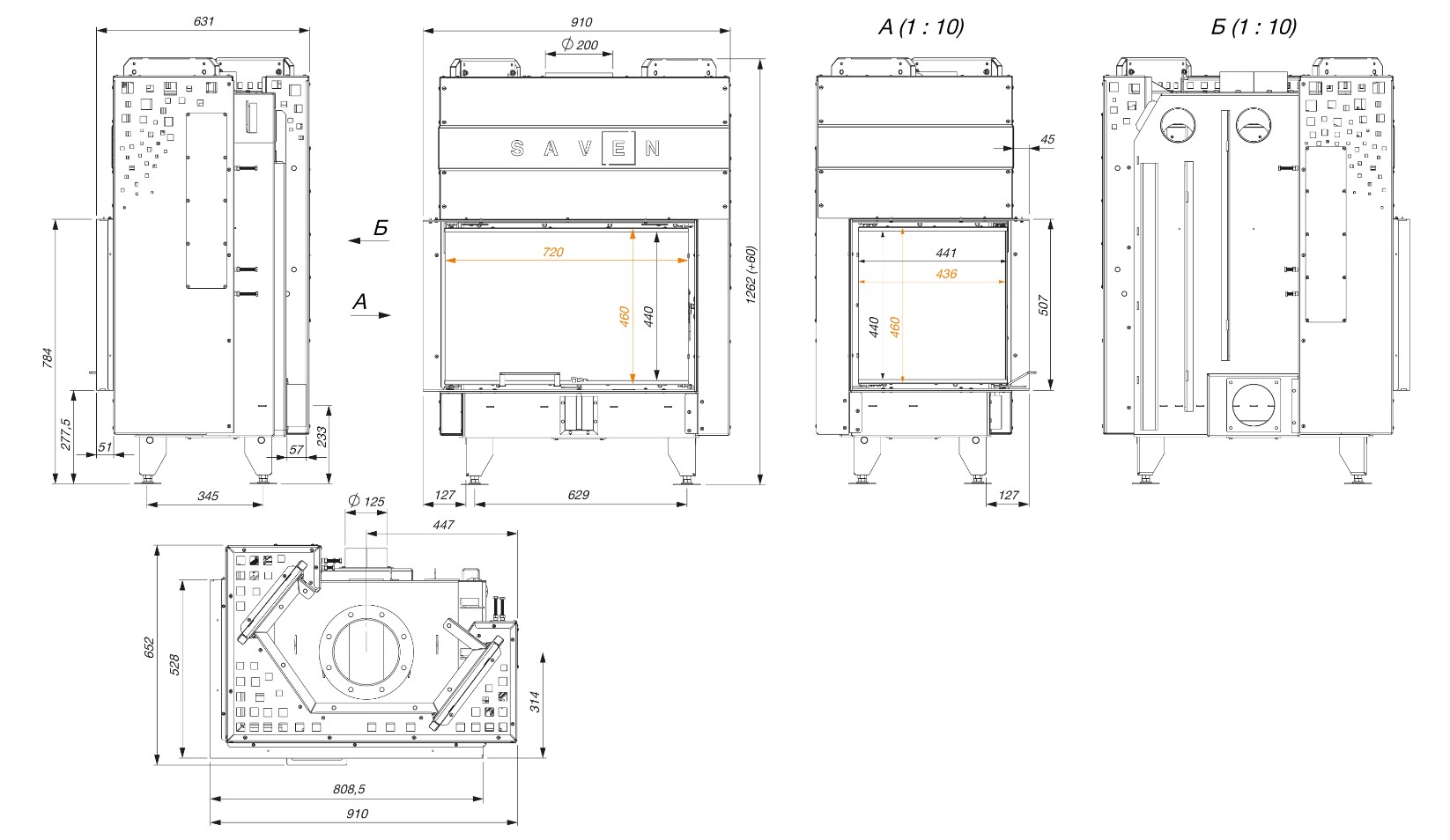 Stalowy wkład z gilotyną SAVEN Energy Up 75х50х47L (15,1 kW) ECO wykonany jest wyłącznie ze sprawdzonych i wysokiej jakości materiałów. W produkcji zastosowano: