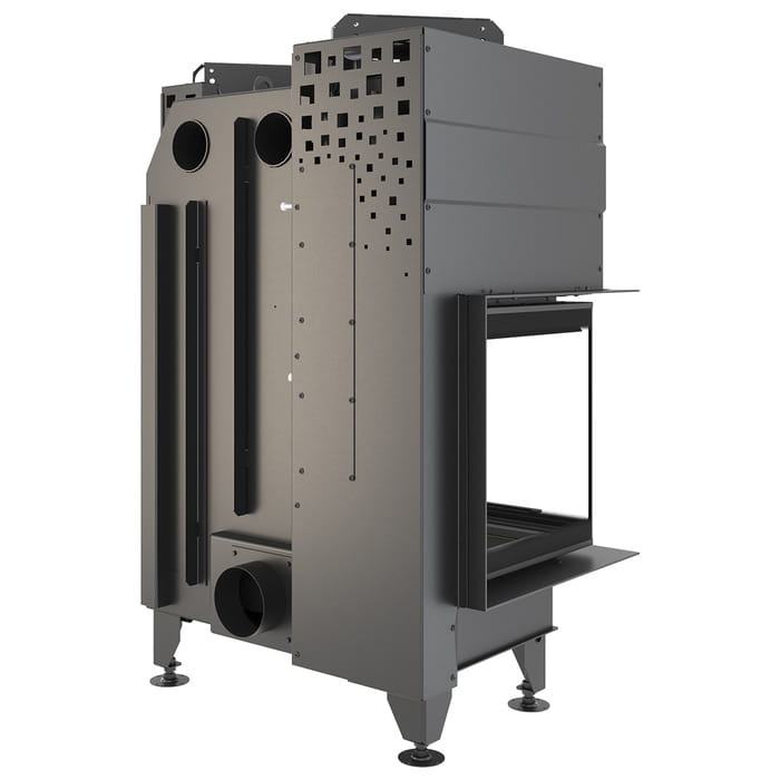 - Unikalna konstrukcja nóżek wkładu kominkowego z prostym szkłem, zapewniająca łatwy i szybki montaż