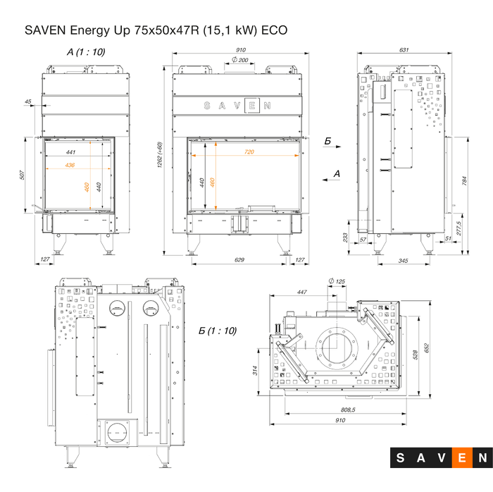 Stalowy wkład kominkowy SAVEN Energy Up 75х50х47R (15,1 kW) ECO z gilotyną