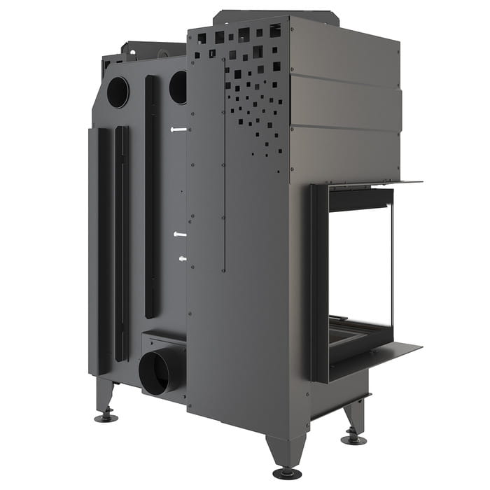 - Unikalna konstrukcja nóżek wkładu kominkowego z prostym szkłem, zapewniająca łatwy i szybki montaż