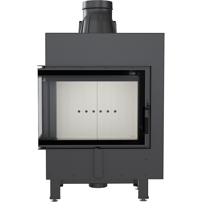 Dodatkowo we wkładzie zastosowany jest system czystej szyby (kurtyna powietrza), czyli powietrze dostarczane jest bezpośrednio na szybę poprzez system kanałów umieszczonych na bokach kominka. W ten sposób dostarczany jest tlen do górnej części komory spalania, w której następuje dopalanie gazów powstałych w procesie spalania drewna, co dodatkowo ogranicza emisję szkodliwego CO do atmosfery.