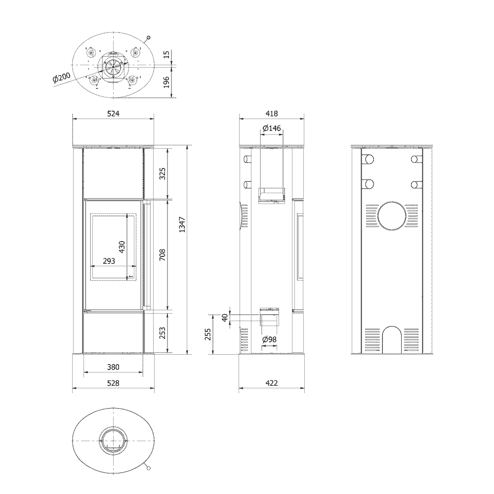 - ułatwiony montaż pieca dzięki otworowi w podstawie - Ø200mm,