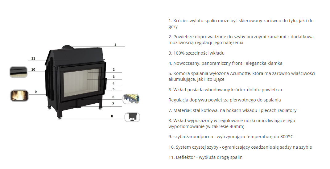 9. Komora spalania wyłożona ceramiką Acumotte.
