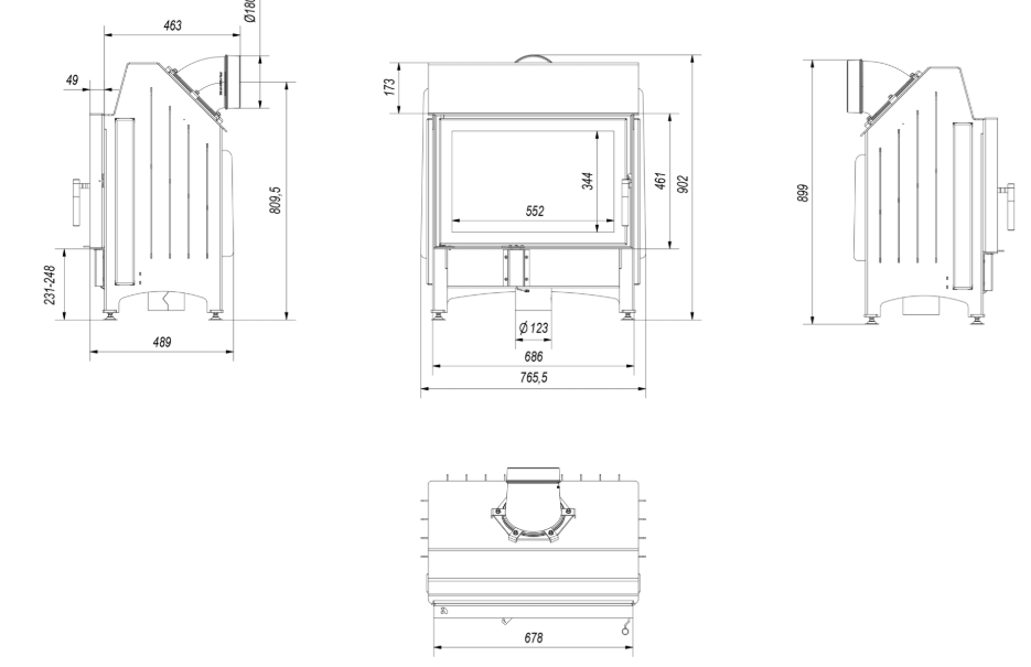 1. Korpus i front wkładu wykonane z blachy kotłowej o grubości